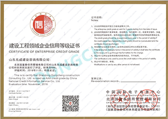 建設工程領域企業信用等級證書